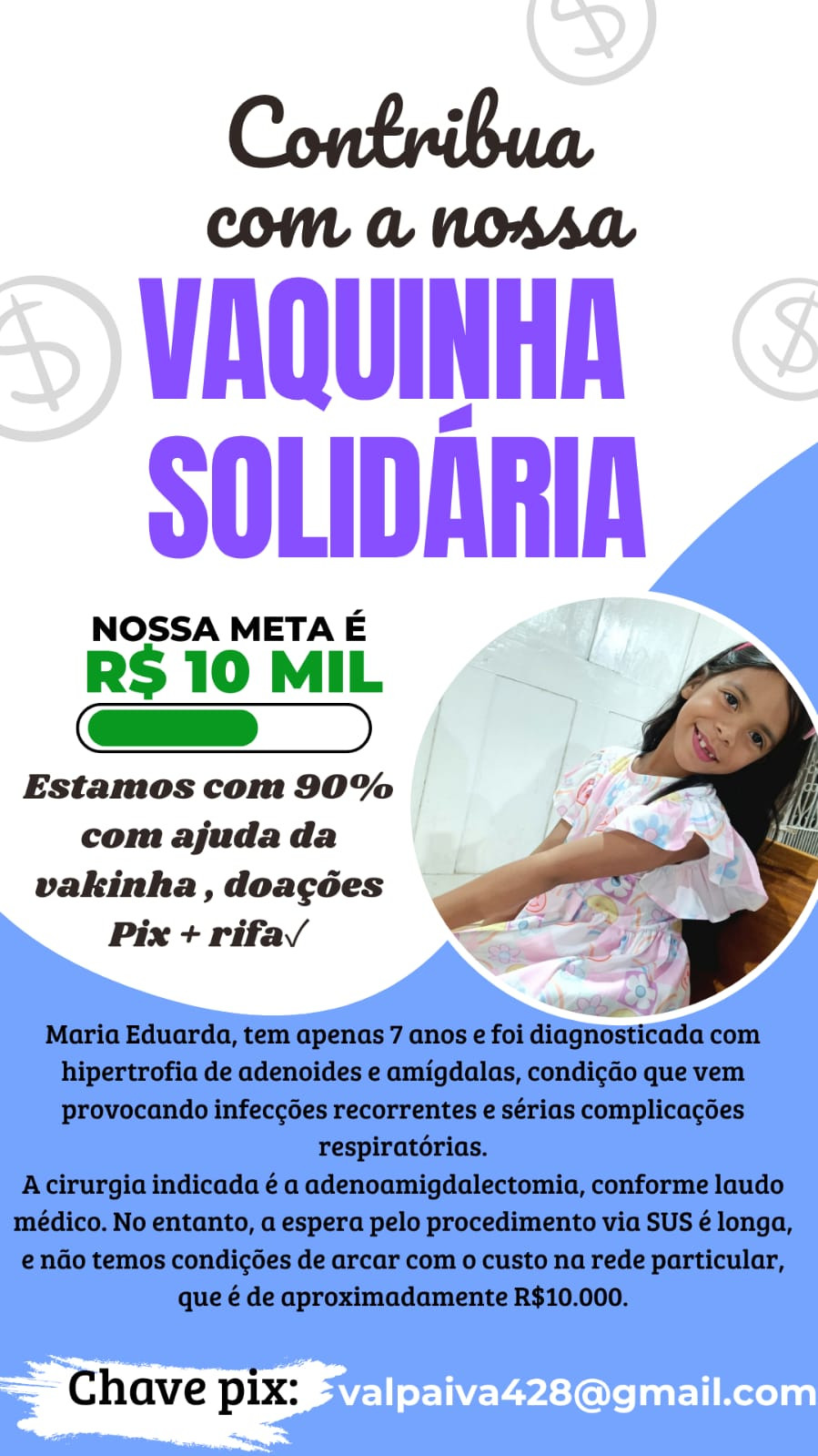 A minha filha precisa com urgência fazer esta cirurgia quem puder ajudar, desde eu já agradeço a todos.