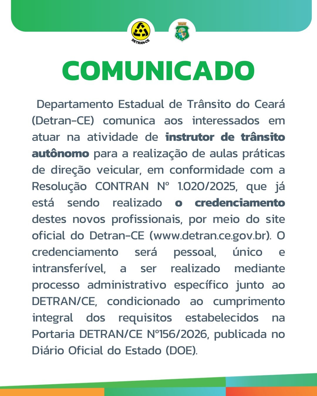 A iniciativa segue as regras da Resolução Contran nº 1.020/2025 e da Portaria Detran-CE nº 156/2026, que estabelecem os critérios legais e administrativos para a atuação desses profissionais na formação de condutores.